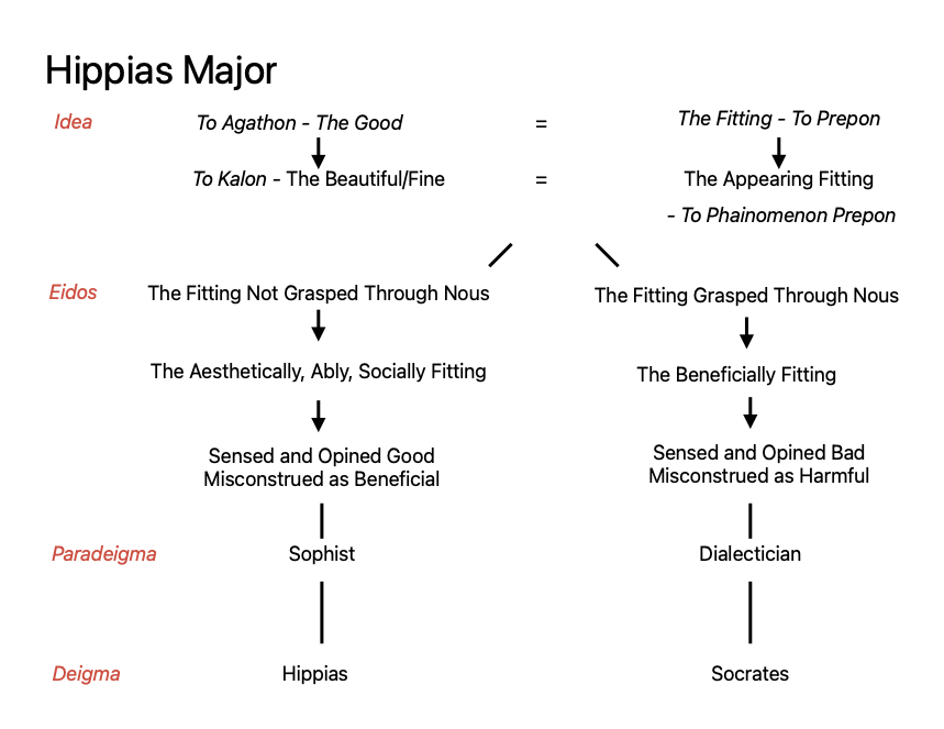 This revised structural analysis of Hippias Major indicates how the paradigmatic approach represents an advance on the earlier analysis presented in: